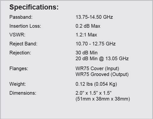 MFC-16413 Microwave Ku-Band Receive Reject Filter Model 16413