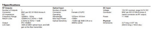 - Provides high quality, direct optical input to XRF series routers and other devices with DC biased RF input ports