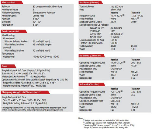 MP-80 C-Comsat Flyaway Antenna MP-80 (Manual Ku/Ka/X Band ManPack)