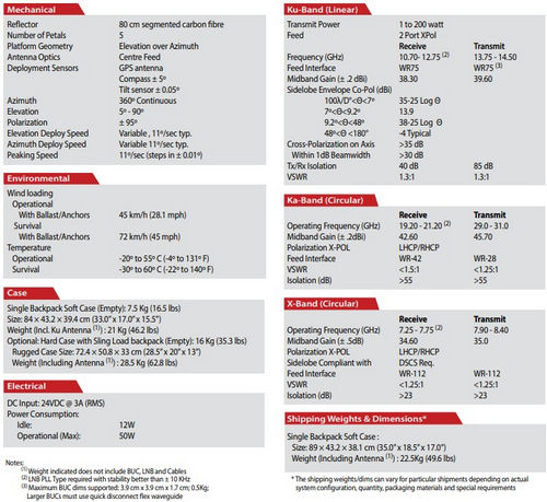 MP-80-MOT C-Comsat Flyaway Antenna MP-80-MOT (Motorized Ku/Ka/X Band ManPack)
