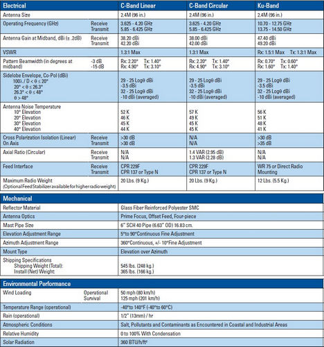 - Tx Operating Frequency: 5.850 - 6.425 GHz - Rx Operating Frequency: 3.625 - 4.20 GHz - Polarization: Linear Cross Pol - Feed Interface: WR137 Waveguide Flange