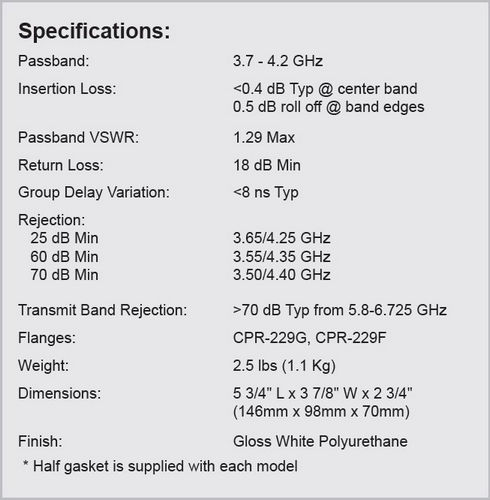 - Passband: 3.7 - 4.2 GHz
