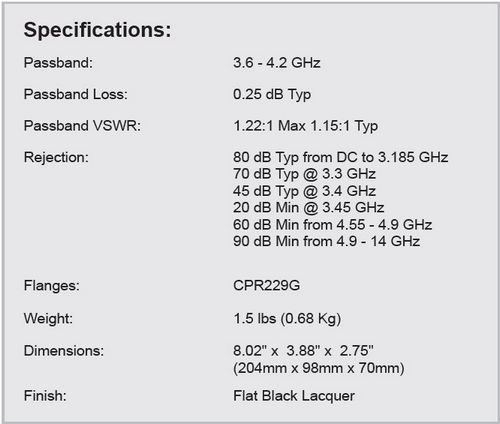 - Passband: 3.6 - 4.2 GHz
