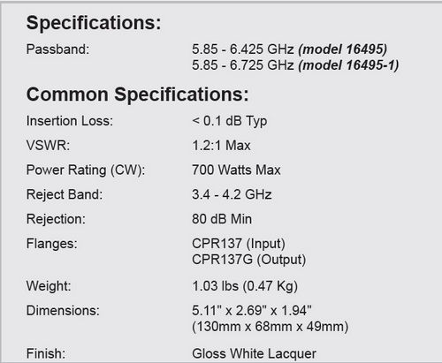 MFC-16495-1 Microwave C-Band Receive Reject Filters Model 16495-1 - Super-Extended Band