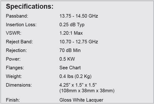 - Passband: 13.75 - 14.50 GHz
