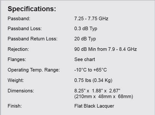 - Passband: 7.25 - 7.75 GHz