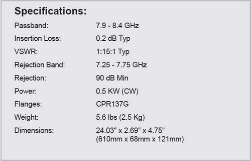 - Passband: 7.9 - 8.4 GHz