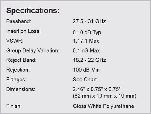 - Passband: 27.5 - 31 GHz