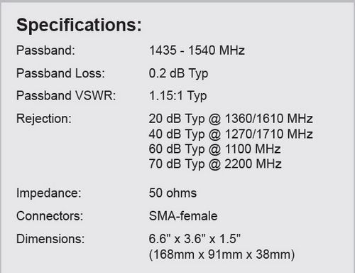 This bandpass filter isolates this telemetry band from other surrounding L-band operations