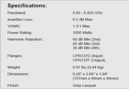 - Passband: 7.9 - 8.4 GHz