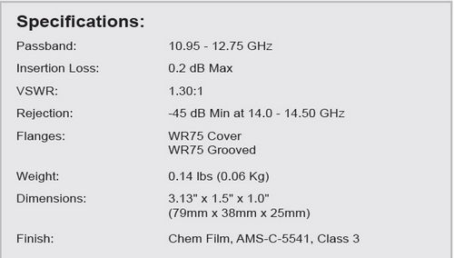 - Passband: 10.95 - 12.75 GHz