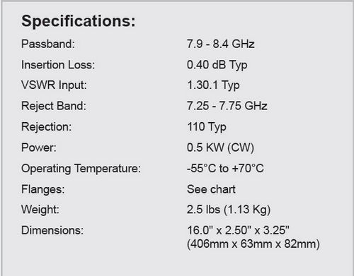 This uplink filter provides ultra-high suppression of the downlink band making it the choice for co-located X-band operation.