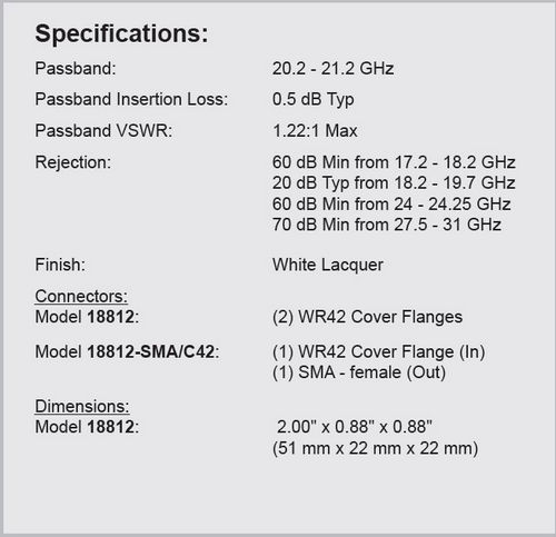 MFC-18812-SMA-C42 Microwave Ka-Band Multi-Purpose Receive Filter Model 18812-SMA/C42