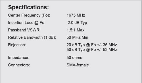 - Center Frequency (Fo) Option: 1350 - 1390 MHz