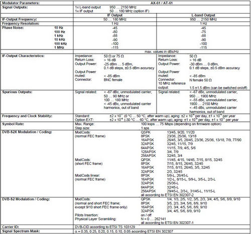 - DVB-S2 modulations: QPSK to 32APSK; normal, short