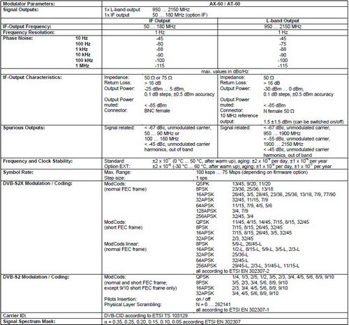 - DVB-S2X modulations: QPSK to 256APSK; normal, short, linear