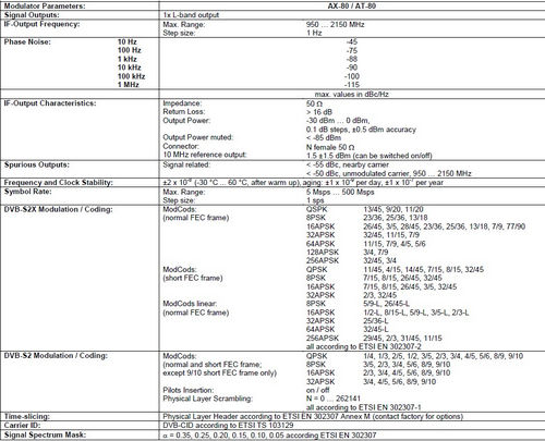 - DVB-S2X modulations: QPSK to 256APSK; normal, short, linear