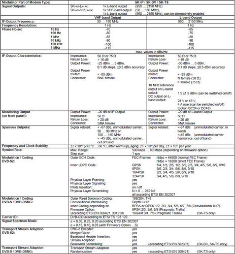 The modem SK-TS is used for transmitting and receiving signals as MPEG transport streams. DVB-S as well as DVB-S2 modulation types are supported.