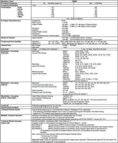 - DVB-S and DVB-DSNG: QPSK/8PSK/16QAM modulation