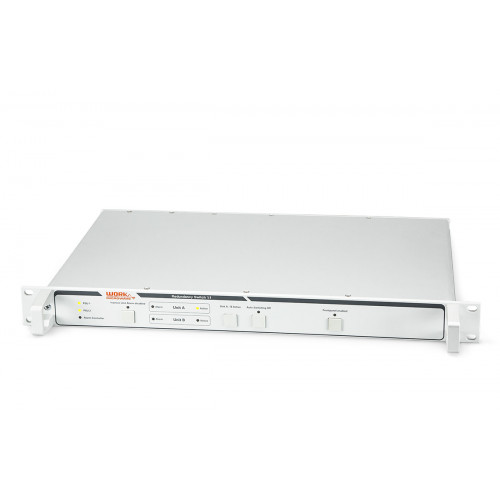 The WORK Microwave redundancy switch 1:1 is used for 1:1 redundancy configurations for Upconverters, Downconverters, Modulator-Upconverters, Transport Stream Modulators, Demodulators, and Modems. It comes standard with a coaxial signal switch for the input signal and a coaxial signal switch for the output signal. For IP modem applications a similar device, RSCI1 is available.