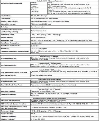The unit can be controlled from the front panel or remotely via RS 232, RS422/485, or IP over Ethernet. The unit can operate in automatic mode, whereby an automatic switchover to the standby unit is performed upon detection of an alarm generated by the active unit. In addition, a manual switchover to the standby unit can be initiated.