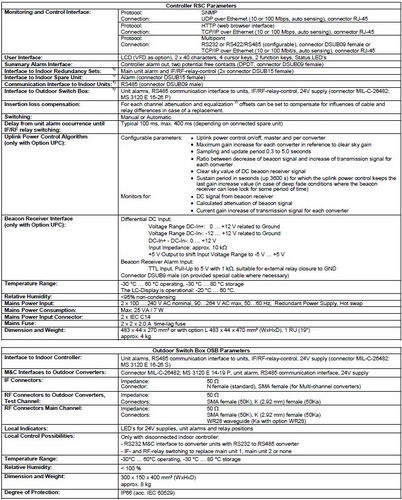 - Interface to Outdoor Switch Box: Unit alarms, RS485 communication interface to units, IF/RF-relay-control, 24V supply (connector MIL-C-26482: MS 3120 E 16-26 P)