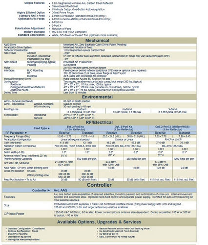 - 2-Port Ku-Band Precision (std. Cross-Pol performance – see opt. feeds)