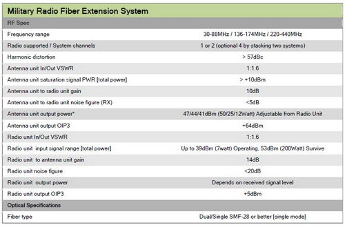 - Input Signal Range - Total Power: Up to 39dBm (7watt) Operating, 53dBm (200Watt) Survive