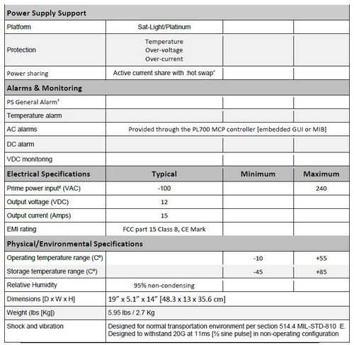 The embedded micro-controller enables the power supply to support the latest remote monitoring features via the PL700 MCP for parameters such as: