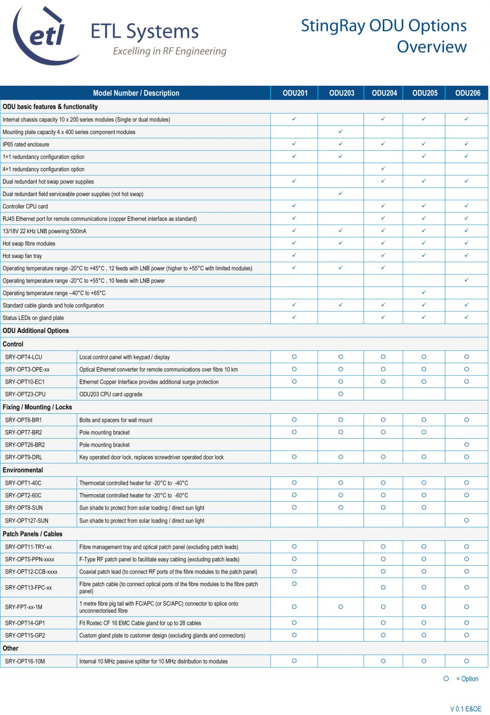StingRay ODU Options
